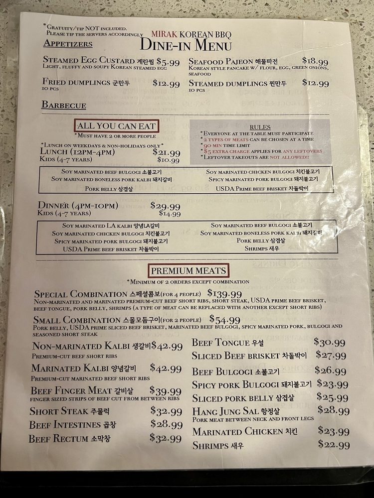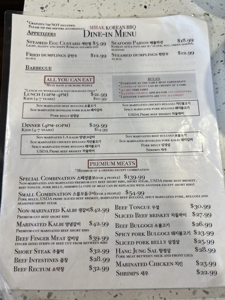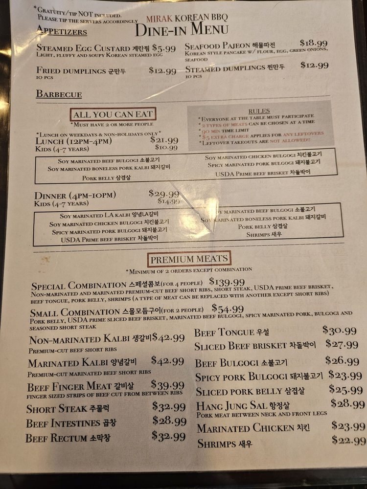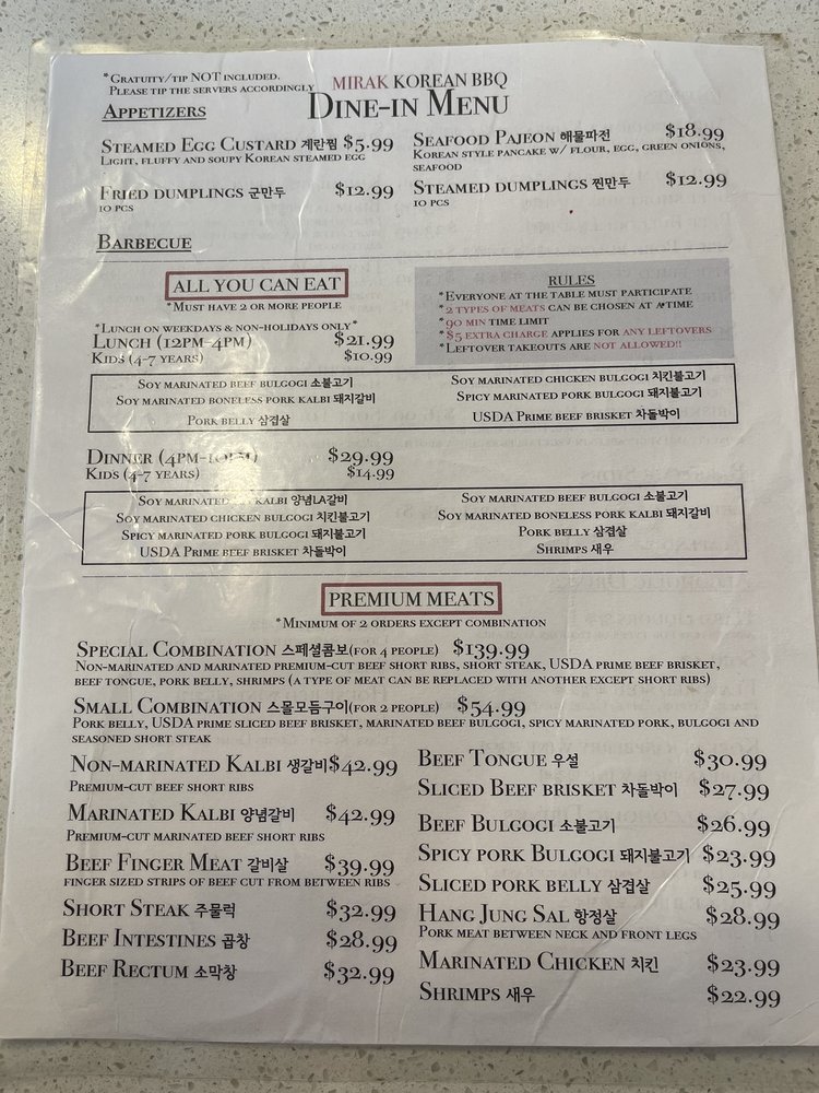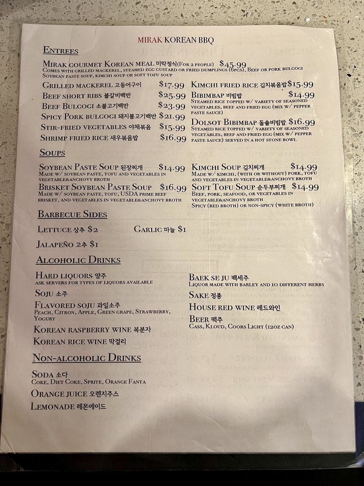 Welcome to Mirak Korean BBQ Restaurant, a hidden gem located in Federal Way, WA, offering an authentic taste of Korean cuisine. The menu is a delightful journey through flavors and textures, perfect for both newcomers and seasoned enthusiasts.